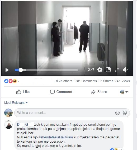 - Zoti Rama këto janë broçkulla që po nxjerr ti këtu reklamë. Nga cilësia e shërbimit që kemi në atë spital edhe poliklinikë nuk janë 2700 në vitë por në ditë. Nëqoftëse nuk më beson pyet dikë që e ka hallin atje . Ose shko vetë por mos lajmëro drejtoreshën apo përgjegjësit e t’u që ta bëjnë fushë me lule kur i viziton. Të lutem vendos dorë në shëndetësi dhe jo video kalamajsh . E ke për detyrë. Bëj punën për të cilën je emëruar . Kaq kisha qofsh mirë.
