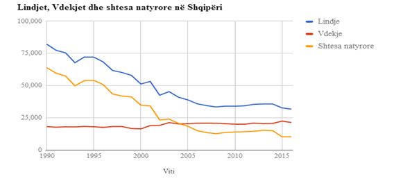 Një tjetër problem që po hasim në ditët e sotme është rënia në mënyrë darstike e lindjeve, ku sipas të dhënave të fundit, INSTAT, lindshmëria në vend bie në nivel më të ulët në këto 100 vite. Në vitin 2016 lindën më pak se 32 mijë foshnja në vend, që është edhe numri më i ulët i lindjeve që nga vitet 1930. Por që kjo e dhënë nuk ka lidhje me abortin selektiv me bazë gjinore seksi, sesa me problemet socio ekonomike dhe emigracionin masiv të popullatës së re në këto 2-3 dekada të fundit.