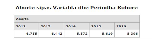Bazuar në të dhënat nga INSTAT, lindjet sipas gjinisë prevalojnë lindjet sipas gjinisë mashkull në vitet 2012 – 2016, të dhëna që shprehen në tabelën 2, burimi INSTAT. Po ashtu, nga ana tjetër, nëse do t’i referohemi të dhënave zyrtare, INSTAT, kemi një rënie të numrit të aborteve të regjistruar në total (këto shifra nuk i referohen aspak abortit selektiv në vetvete) në vitet 2012 = 2016, tabela 3.