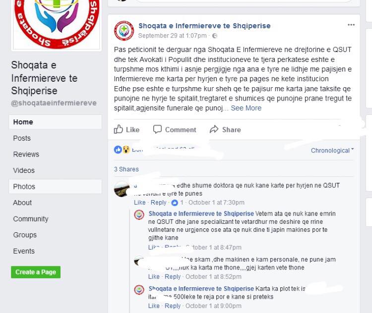 Megjithatë, duket se paska edhe mjekë që gjithashtu paguajnë për t’u futur në institucion. Sipas një komenti në faqen zyrtare të Shoqatës së Infermierëve të Shqipërisë, një mjeke shprehet e habitur teksa deklaron se “Unë s’kam (kartë) dhe makinën e kam personale. Në punë jam në QSUT. Nuk ka karta më thonë. Gjej kartën vetë thonë”.