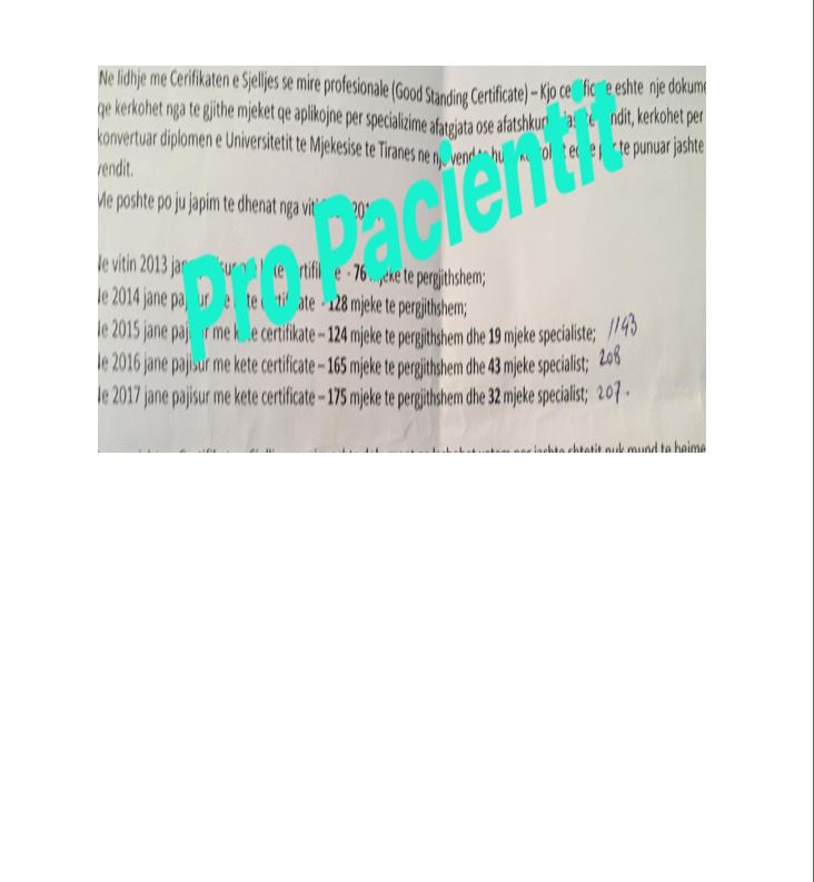 Denisa Canameti Certifikata e sjelljes së mirë profesionale (Good Standing Cerificate) lëshohet nga Urdhri/Dhoma apo Shoqata e Mjekëve të vendit të vet ku vërtetohet se mjeku është i regjistruar, e ushtron profesionin dhe se gjatë ushtrimit të profesionit nuk ka asnjë masë disiplinore kundrejt tij/saj. Kjo certifikatë është një dokument që kërkohet nga të gjithë mjekët që aplikojnë për specializime ...