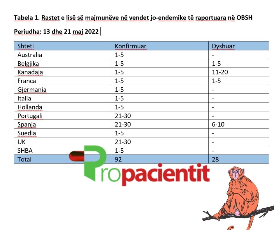 Që nga 21 maji, OBSH-së i janë raportuar 92 raste të konfirmuara dhe 28 raste të dyshuara të lisë së majmunëve. Asnjë vdekje nuk është raportuar deri më sot.